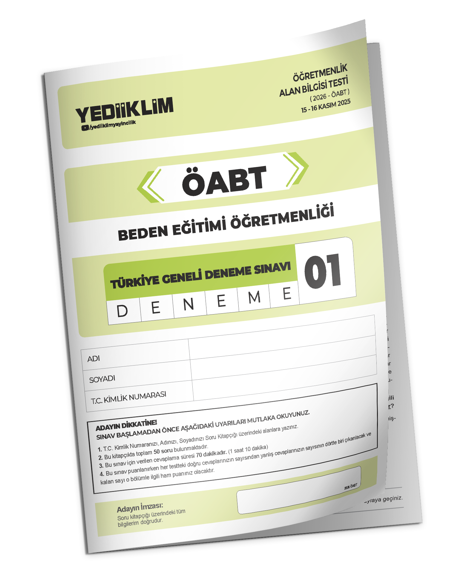 2026 YEDİİKLİM ÖABT Beden Eğitimi Öğretmenliği Türkiye Geneli Deneme Sınavı 1