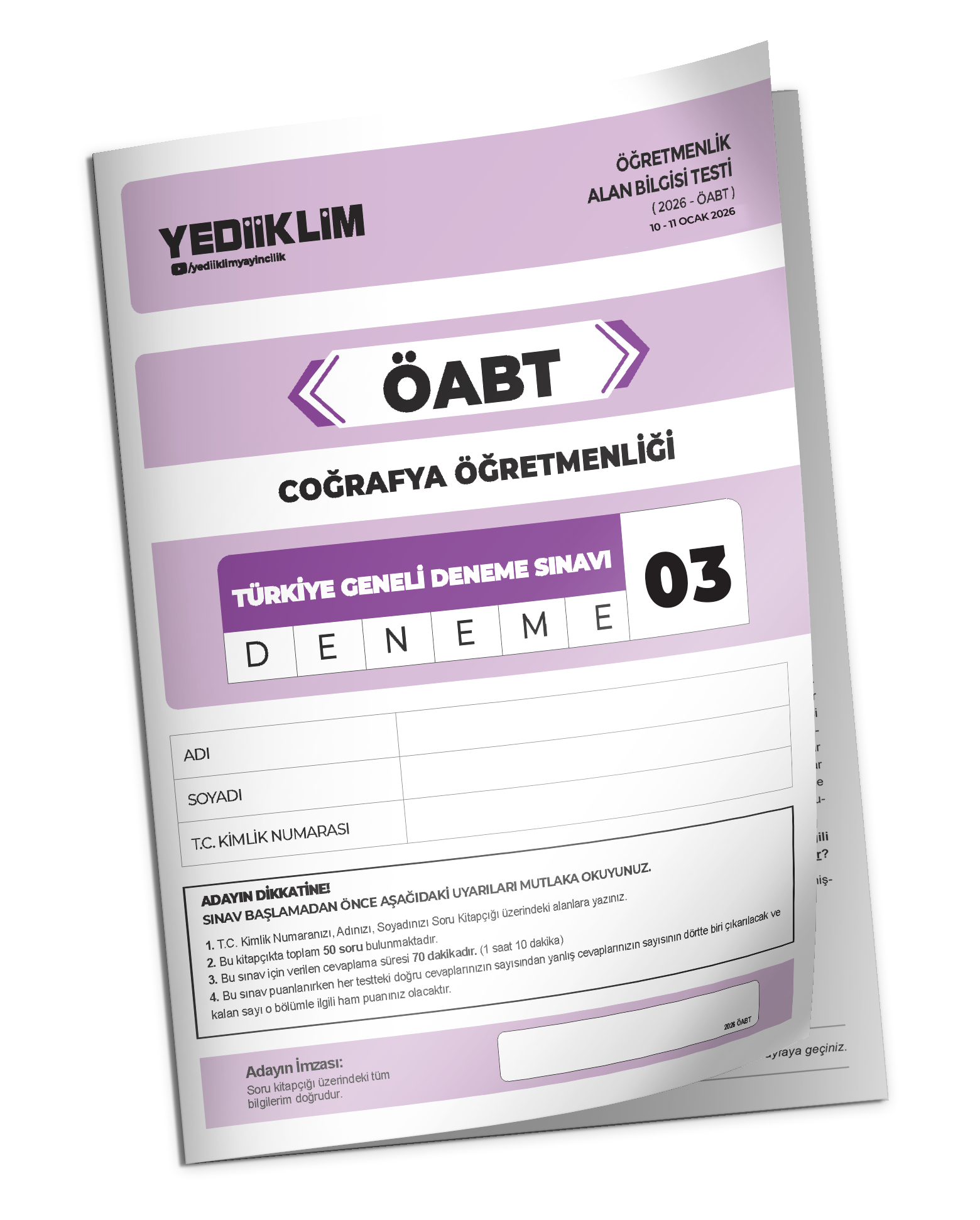 2026 YEDİİKLİM ÖABT Coğrafya Öğretmenliği Türkiye Geneli Deneme Sınavı 3