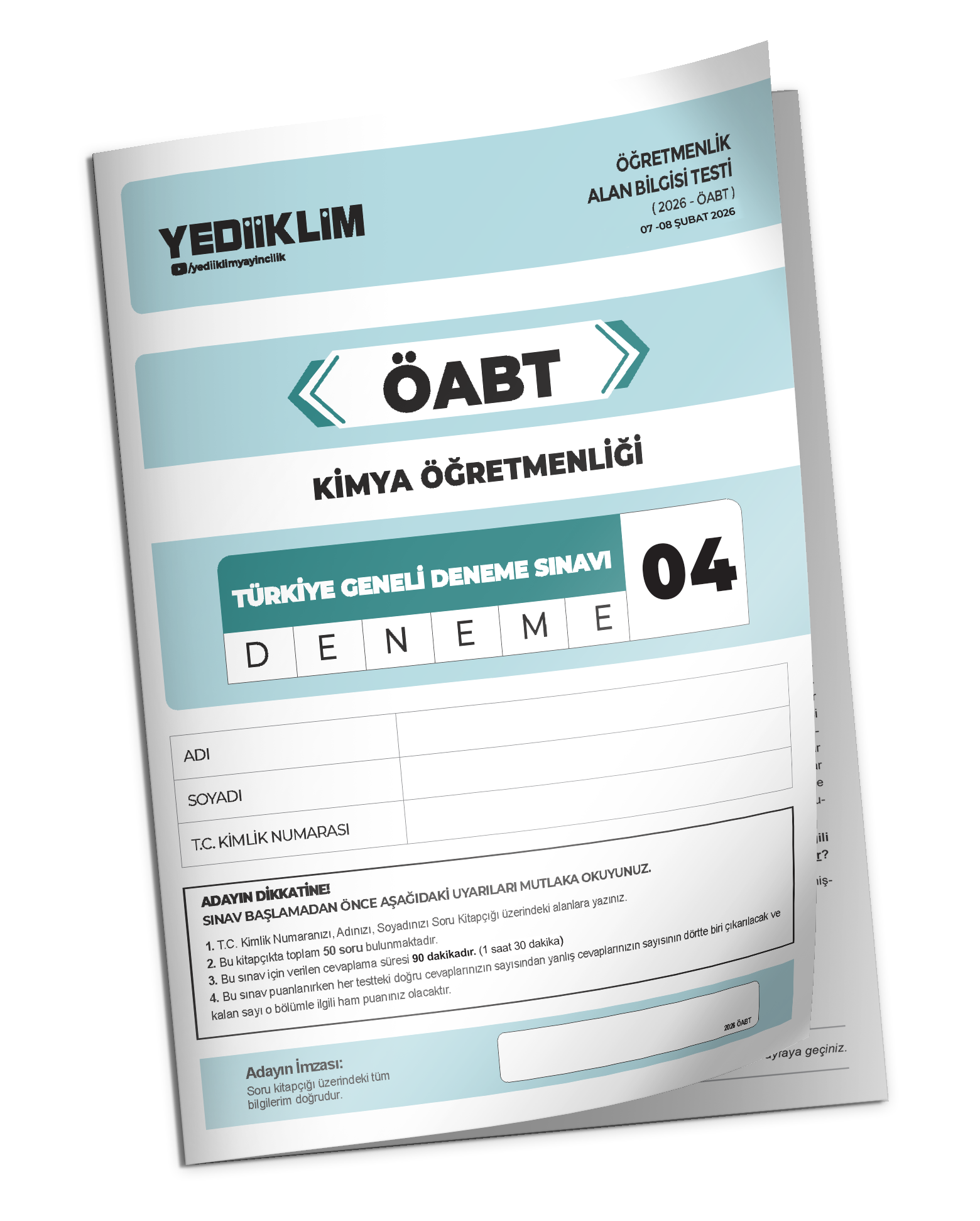 2026 YEDİİKLİM ÖABT Kimya Öğretmenliği Türkiye Geneli Deneme Sınavı 4