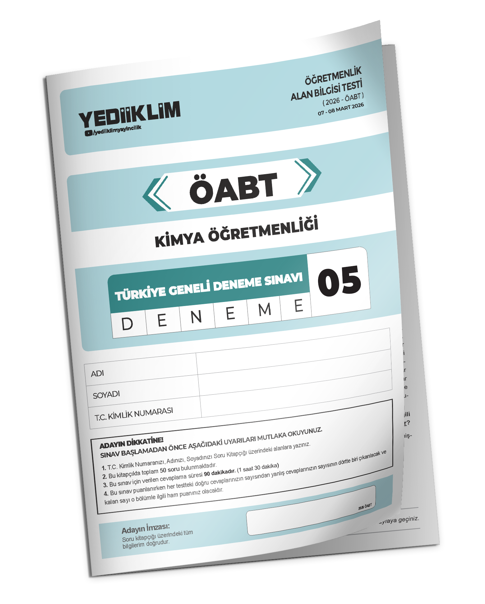 2026 YEDİİKLİM ÖABT Kimya Öğretmenliği Türkiye Geneli Deneme Sınavı 5