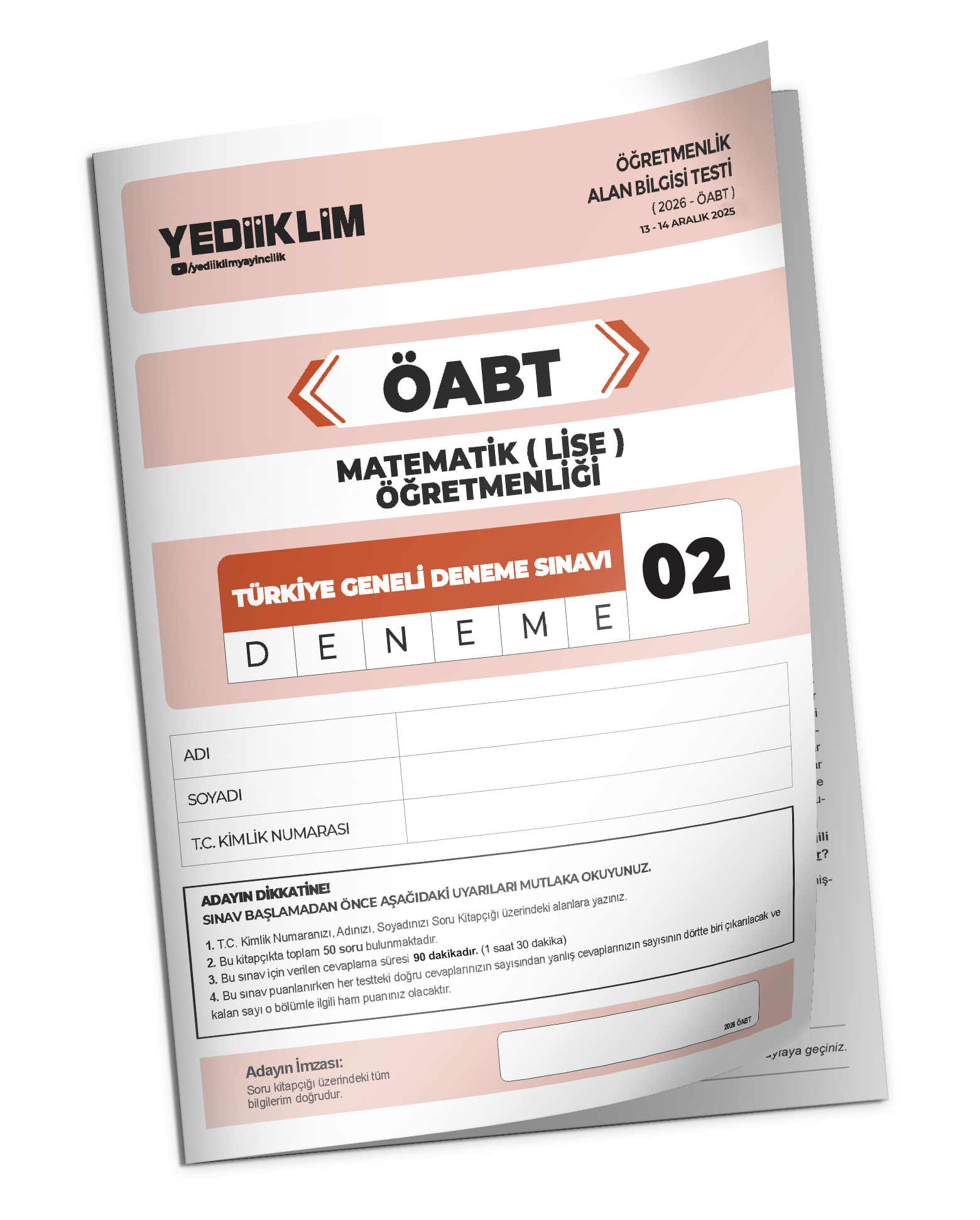 2026 YEDİİKLİM ÖABT Matematik (Lise) Öğretmenliği Türkiye Geneli Deneme Sınavı 2