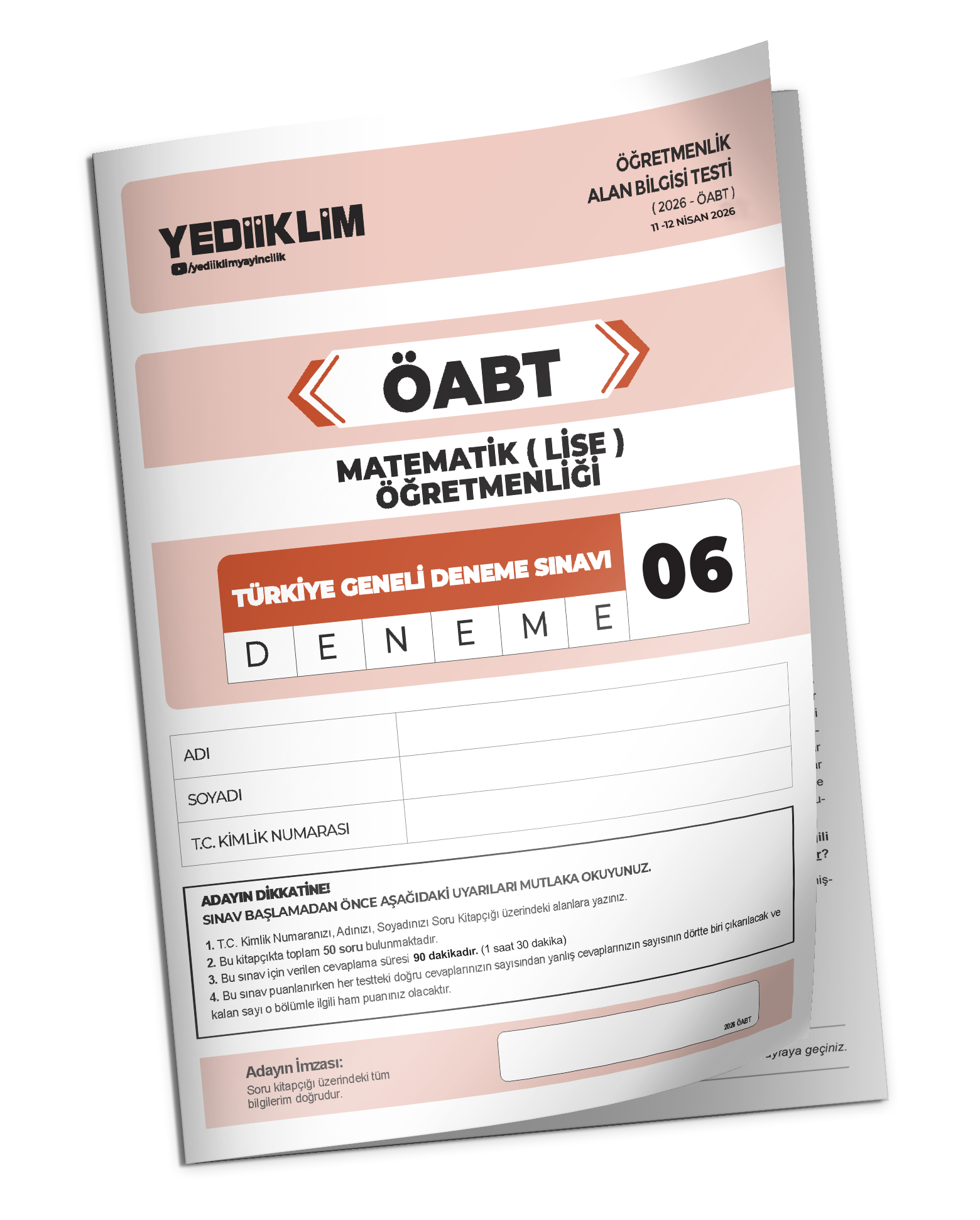 2026 YEDİİKLİM ÖABT Matematik (Lise) Öğretmenliği Türkiye Geneli Deneme Sınavı 6